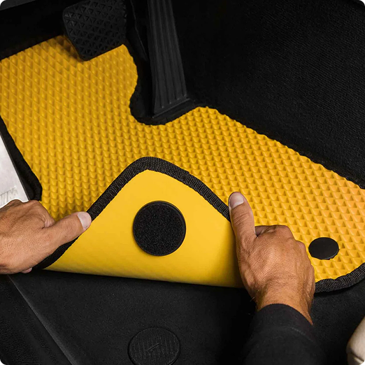 EVA je inovatívny polymér - odolný, vodoodolný a tvarovo stály materiál. Na rozdiel od bežných gumových alebo textilných kobercov je ľahký, bez zápachu, nevsakuje vodu ani špinu a nekrčí sa.